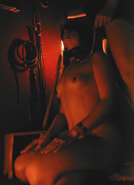 A když nadešel ten den (byl to víkend, který jsme měli jen pro sebe), věděl jsem už, že to celé půjde - začali jsme v pátek večer nasazením obojku, proběhlo pár kratších scének, které se skutečně vyvedly, mezi tím krásně fungovalo D/s, hlavně to mezi námi pořád jiskřilo, prostě paráda. A to je ten správný moment, kdy nasazuji L na oči pásku, nechávám ji klečet vprostřed místnosti, vzdálím se, pak, aniž by mě slyšela, jsem zas u ní, hladím ji, buduji vzrušení.... Pak se vzdaluji na delší dobu, chystá mučírnu, i cestu k ní... a pak se k L opět vracím, lehkým trhnutím za obojek ji zvedám, následuje mě...