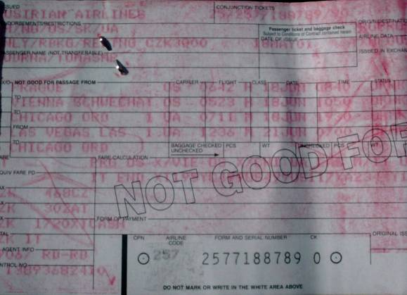 Cesta letadlem po trase Praha-Vídeň-Chicago-Las Vegas probíhá asi takto: ráno dojedete do Prahy. Čekáte na Ruzyni 2 hodiny na opožděné letadlo. Sednete do něčeho, co je snad menší než autobus (turbovrtulový Dash8 společnosti Tyrolean Airlines). Odhučíte do Vídně. Z oken nic nevidíte, protože nad Evropou jsou skoro pořád mraky (jen 2x se mi poštěstilo letět 45 minut nad Alpami -celých 500 km dlouhého oblouku tohoto pohoří bylo krásně vidět - bylo to cestou na Tenerife, resp. při jedné cestě tam a o pár let později opět při cestě tam. Cesta zpátky vždy probíhala nad příkrovem mraků. Ale to odbíhám.) V letadle dostanete housku a máslem.