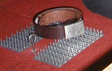 Na téma středověké mučení tu mám jeden drobný příspěvek. Po rohoži, na které se špatně klečí :-) tu mám něco pro ty, kdo nechtějí nebo nemohou věnovat čas výrobě čehokoliv z Domácí dílny. Stačí dojít do železářství a požádat o plechový výlisek na výrobu vazníků (dřevěné krovy, střechy).Na fotografii vidíte plochu 15 x 8 cmpokrytou ostny z plechu tloušťky 1.5 mm - stoupnete-li na ni kolmo ploskou nohy, hroty se neohnou a dokonce vám ani nepropíchnou chodidlo. Zkuste si to... :-)