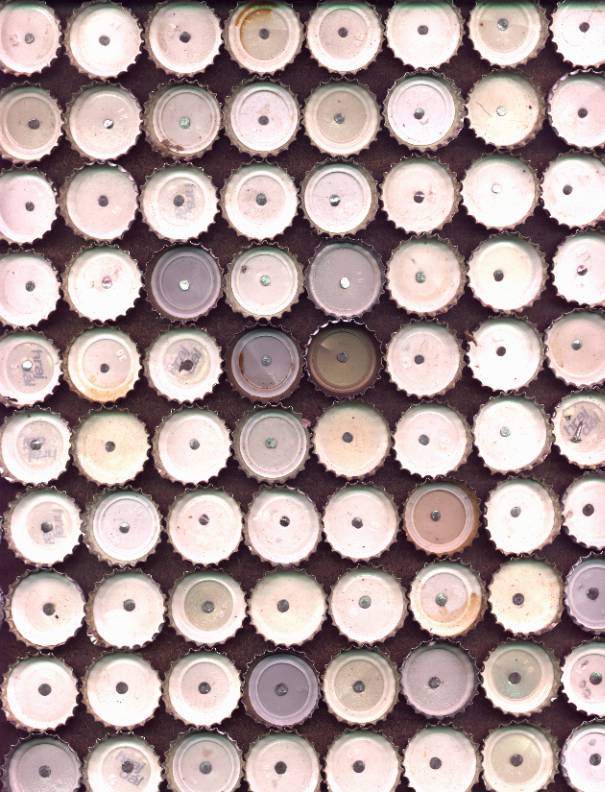 K výrobě rohože nepotřebujete nic než dřevěnou nebo dřevotřískovou desku (rohož na obrázku je vyrobena z dřevotřískové desky rozměru 360x360x16 mm). Na uvedený rozměr rohože se vejde 144 víček od piva, limonád, šťávy... Samozřejmě pokud máte větší nebo menší desku, potřebujete jiný počet víček. Víčka byste mohli na desku přilepit, přišroubovat vruty nebo přibít hřebíky - já je přibil, je to nejrychlejší a víčka se (zatím) nevyviklala.