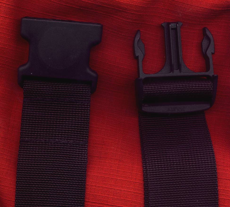 Při volném zavěšení celého těla do prostoru používám silné popruhy - šíře 5 cm, koupíte v galanterii (popruhy se používají u batohů). Popruhy bývají černé, což se hodí. Šířka 5 cm stojí 18 Kč za metr, což proti 10 Kč za metr u šířky 1 cm (skvělé opratě!) není tak moc. Ke spojení popruhů lze použít plastové spony, které se rovněž používají na batohy. Když si tedy koupíte popruhy a spony, nikomu to nebude divné :-) Počítejte ale s tím, že potřebných 20 m popruhu hned tak někdo nekupuje. Pokud v prodejně nemají potřebnou délku, zjistěte si, zda ji mohou doobjednat nebo zda mají v jiné prodejně na skladě stejnou šířku popruhu. Problémům se vyhnete, když využijete prodejnu Kutil. Jednu část spony přišijete k popruhu, druhou částí provlečete opačný konec popruhu - popruh lze ve sponě utáhnout nebo povolit. Zkrácení popruhu je možné provést rukou po mírném nadlehčení zavěšeného partnera. Prodloužení popruhu lze provést jen když popruh není zatížen, zatížená spona popruh velmi spolehlivě drží - což je dobře, nechcete přece, aby dolejšek spadl.